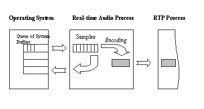 Very popular scenario of real-time sound processing are "capturing loop" and "playing loop". Any loop is independent from the other loops. They may be organized as separate threads or even the separate processes. To simplify the matter, the capturing, encoding, decoding and playing procedures are called further threads.